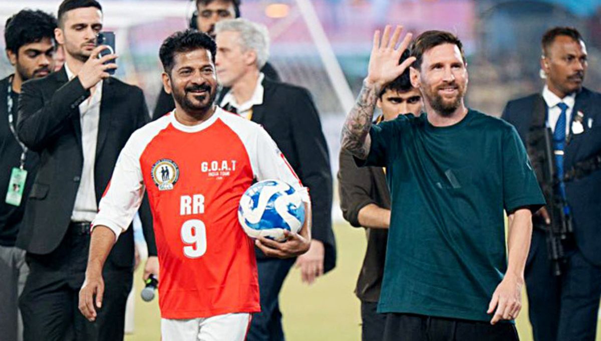 हैदराबाद में मेसी का जादू, रेवंत रेड्डी के साथ खेली फुटबॉल, गोल से गूंजा स्टेडियम, देखें VIDEO