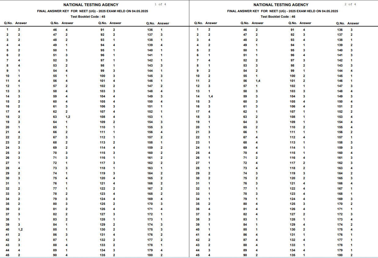 Neet Result 2025: नेशनल टेस्टिंग एजेंसी (NTA) 14 जून को आधिकारिक वेबसाइट neet.nta.nic.in पर NEET UG 2025 का रिजल्ट घोषित करने वाला है. इससे पहले आज एजेंसी ने प्रवेश परीक्षा के लिए NEET UG फाइनल आंसर की जारी कर दिया है. ऐसे में साफ है कि रिजल्ट कभी जारी किया जा सकता है.
